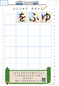 例えば、「つ」「し」「へ」「く」の復習プリントでは、