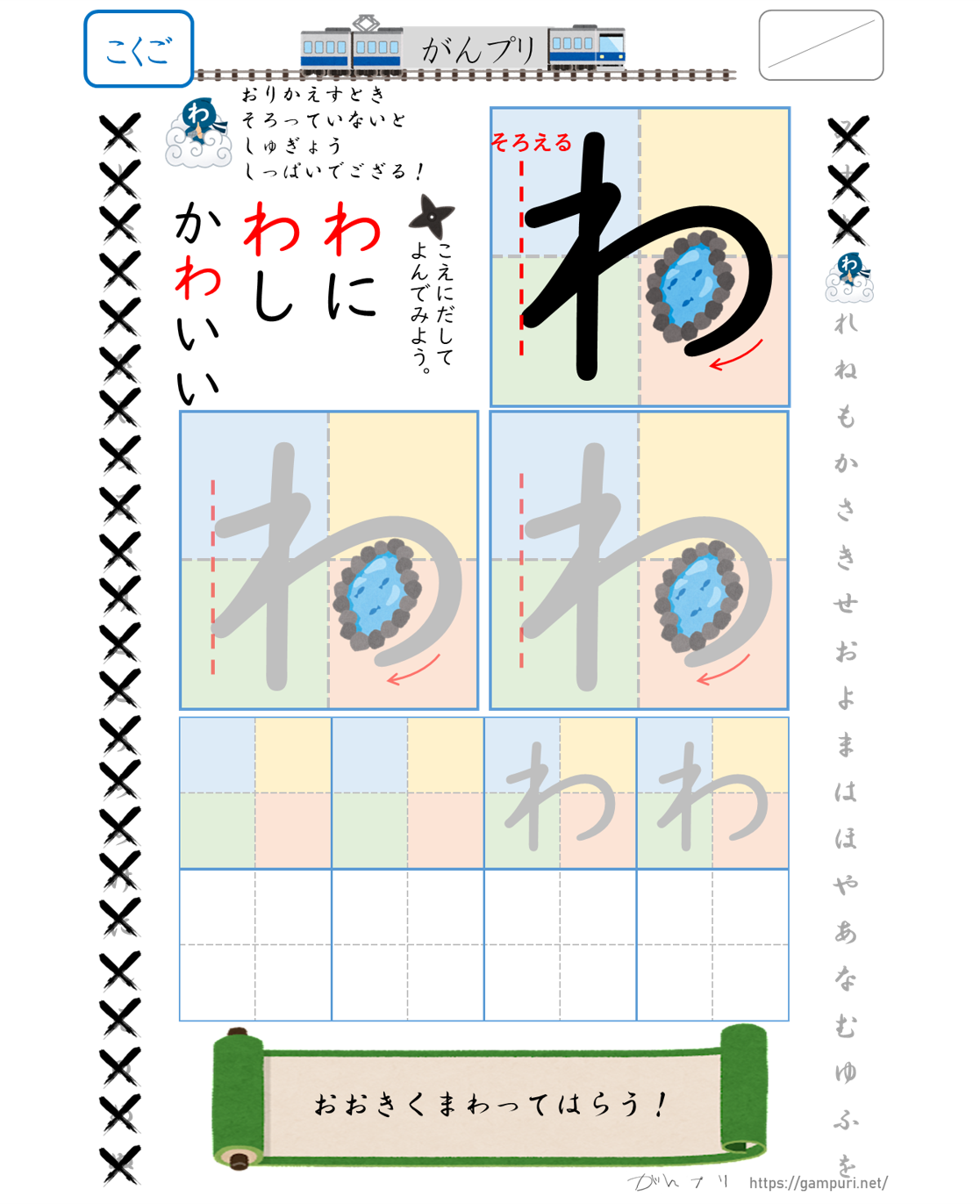 「わ」「れ」「ね」の折り返し3兄弟です。